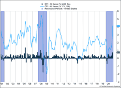 But the base effect is only part of the story. The monthly increase of 0.8% is quite large. Sometimes big swings in inflation are caused by two of the more volatile elements: food and energy. But energy prices dropped last month, and food prices only rose 0.4%. Core inflation, which excludes those two areas, rose 0.9% compared to the previous month.