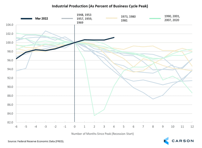 Economic data reported last week was fairly strong. Industrial production surged 0.6% to a new record high. Strength in auto production and energy pushed the measure higher. Production is far stronger than in past recessions (Figure 1). Core retail sales, which exclude food and energy, rose 0.7% — or 0.1% when adjusted for inflation. That small gain was the first, after adjusting for inflation, in three months.