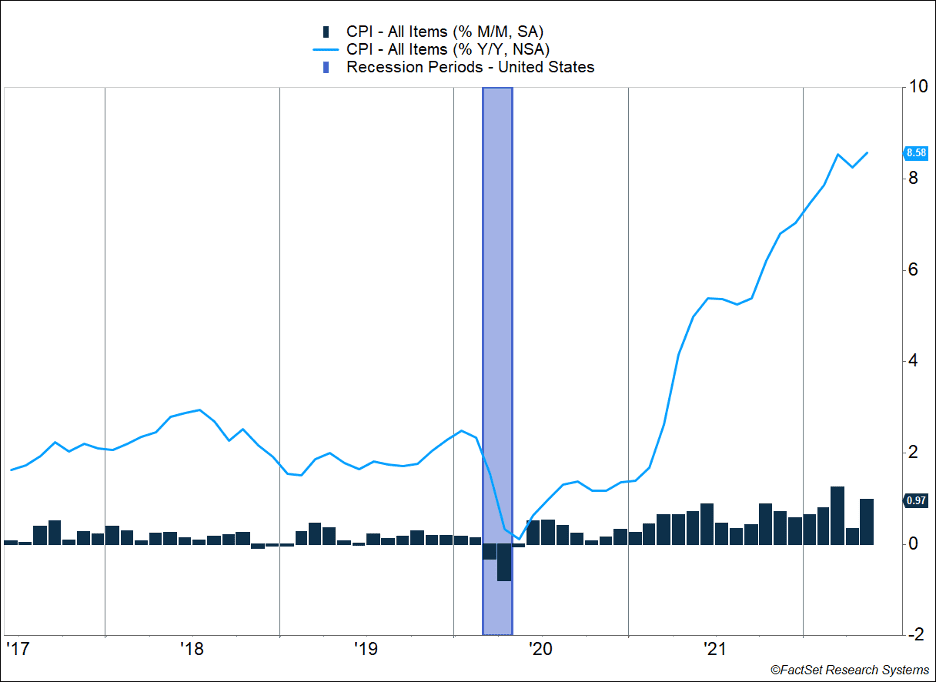 The S&P 500 dropped 5.1% last week as investors digested new inflation data released on Friday. May’s Consumer Price Index (CPI) report showed a reacceleration of inflation after a brief reprieve in April. Headline CPI increased 8.6%, which is the fastest pace since December 1981. The primary drivers of inflation were energy and food prices. Gasoline prices increased 4.1% in May, a big reversal from the 6% decline in April. Food prices, primarily from grocery store spending, climbed 1.4%.