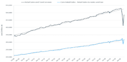 Figure 1 also provides a better understanding of what parts of the economy are bouncing back most rapidly. Core retail sales, which exclude food service, autos, and gasoline, didn’t rise nearly as much. As can be seen in Figure 2, sales at gasoline stations, motor vehicle retailers, and restaurants all snapped back but remain well below year-ago levels.