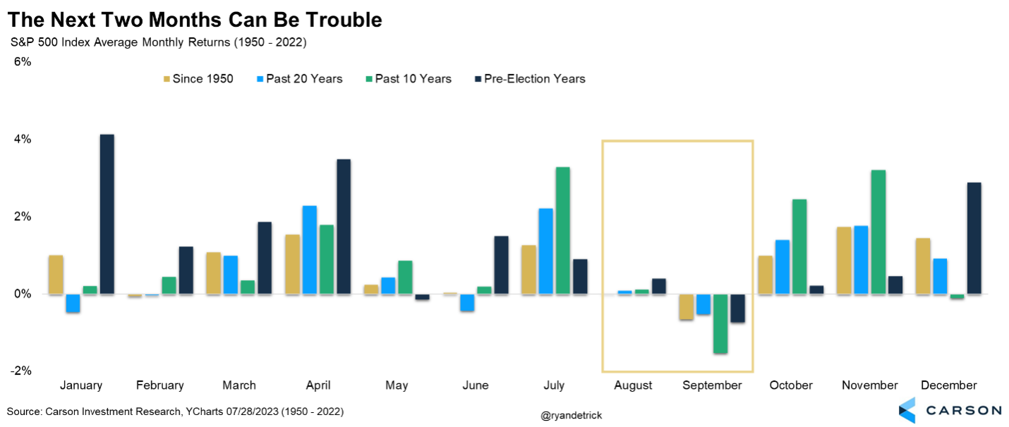 - Stocks have had a great run, but August and September are typically weak.