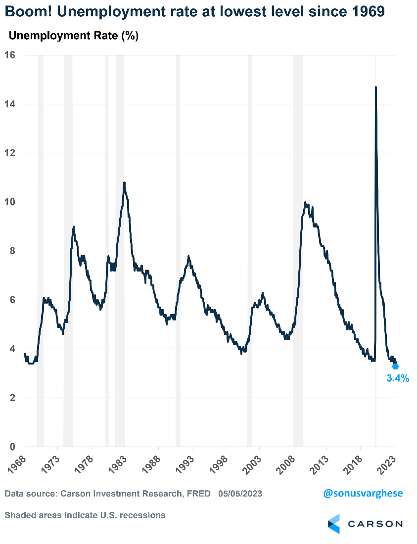 Any skepticism of the job creation numbers washes away with the unemployment rate, which fell to 3.4%. That’s the lowest level since 1969!