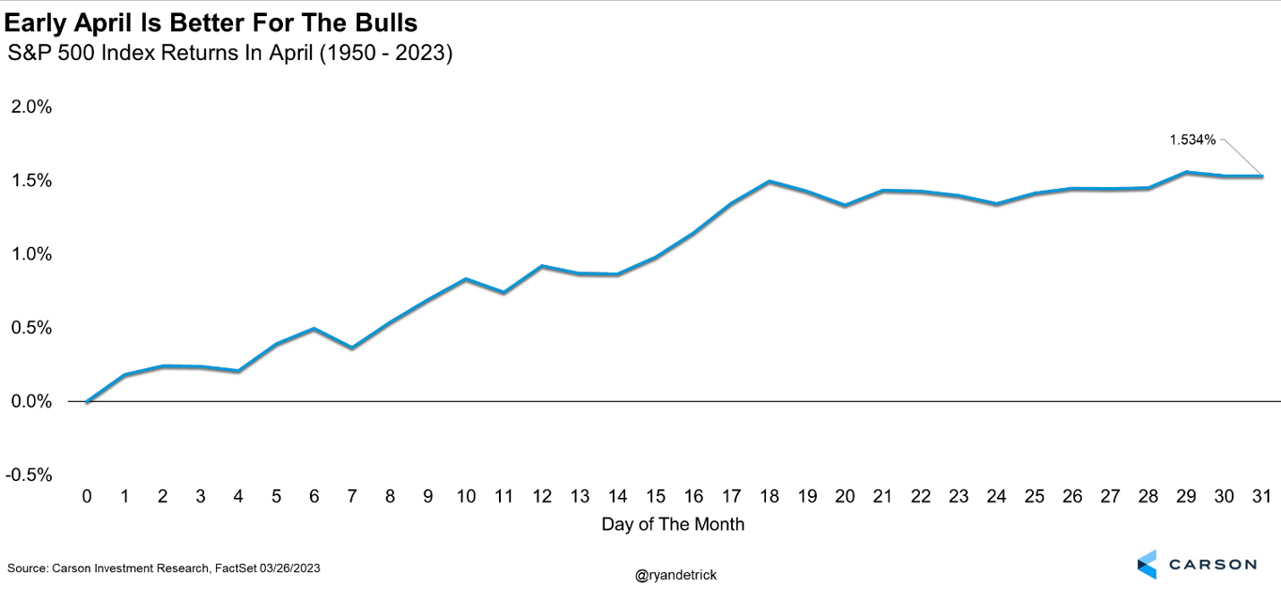Be aware that much of the gains in April historically take place during the first part of the month.