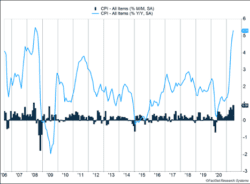 • The Consumer Price Index surged 0.9% last month and is up 5.4% over the last year.