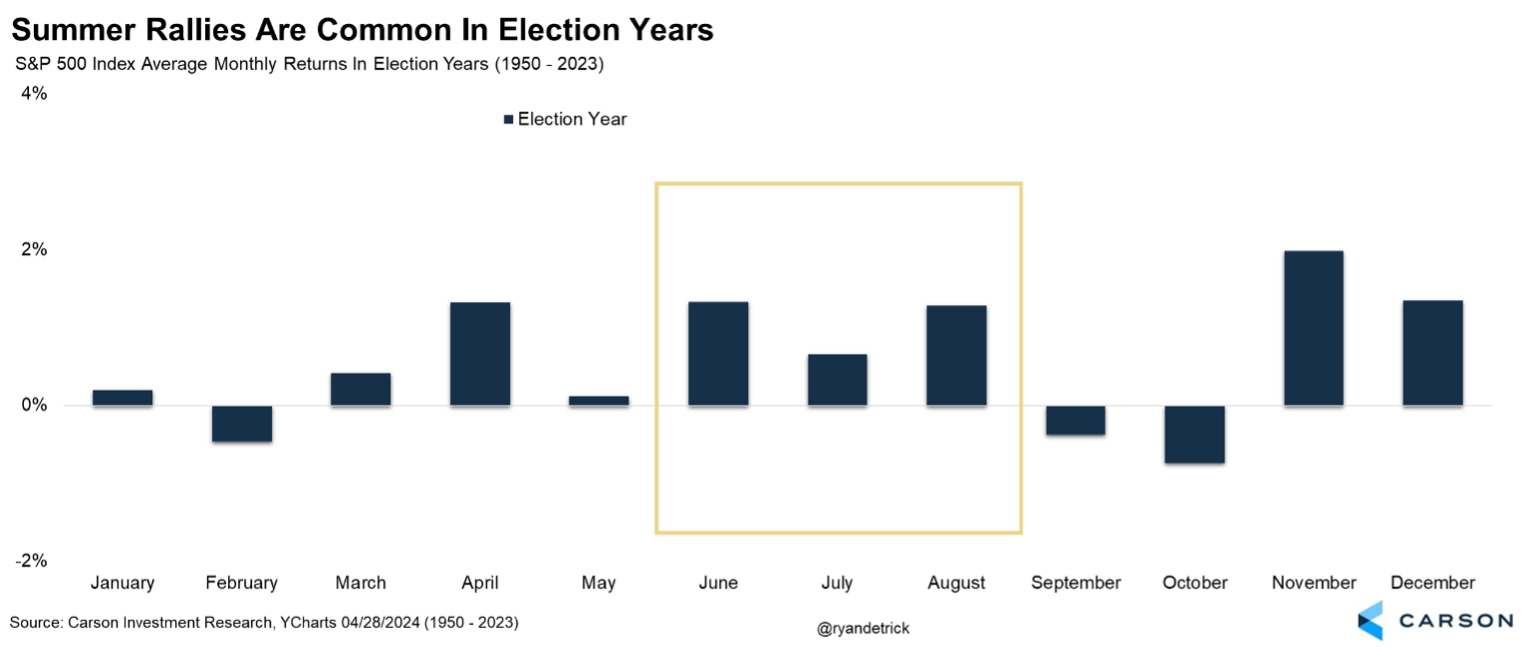 Here’s the same data, but focusing specifically on election years. As you can see, a summer rally is quite normal.